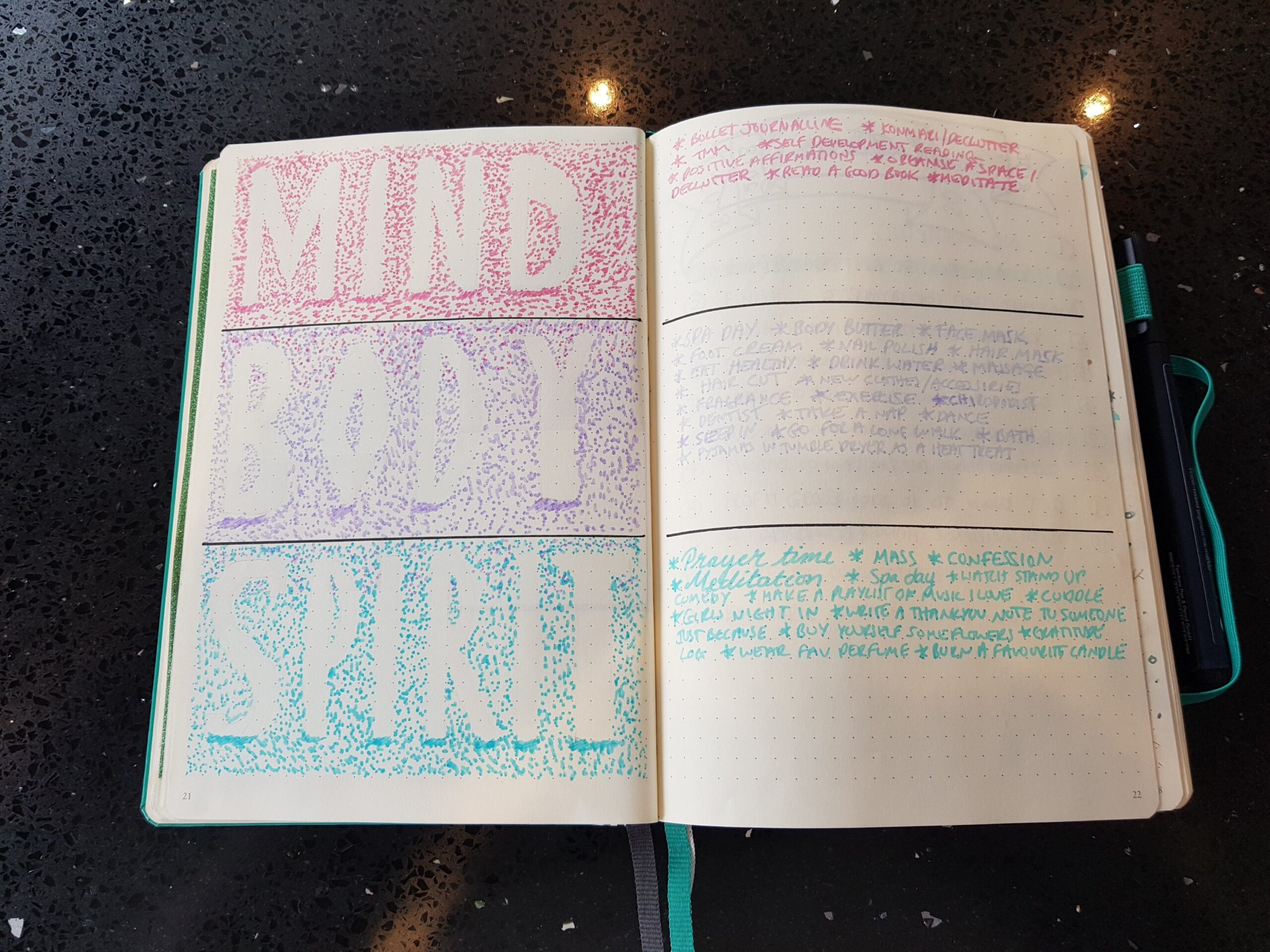 I also have my level 10 life, self care spread, housework schedule, memories, my vision board, and my business pages. The beauty of bullet journaling is that it can be whatever you need it to be.